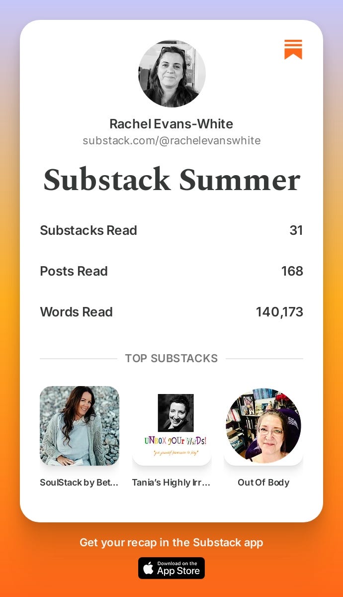 You can see your own summer recap in the Substack app. I’d love to see what you’ve been reading.